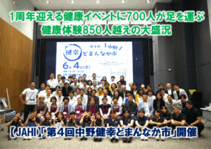 1周年迎える健康イベントに700人が足を運ぶ健康体験850回越えの大盛況 公益財団法人日本ヘルスケア協会(JAHI)が6月4日(水)に中野区役所で「第4回中野健幸どまんなか市」を開催した(共催:中野区地域支えあい推進部 … 続きを読む 【JAHI】「第4回中野健幸どまんなか市」開催