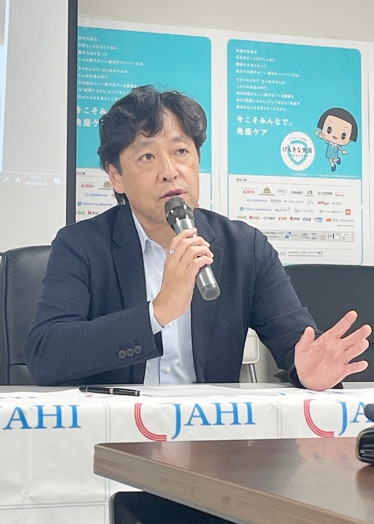 「先日ふと立ち寄ったコンビニで、“健康”や“老い”をテーマにした雑誌が数多く並ぶのを見て、ヘルスケアに対する興味関心の高まりを改めて感じた。一方、興味関心は高まっているものの、ヘルスケアに対する国民の知識は十分ではない。そのリテラシーを高めるためにも、まずは我々自身がヘルスケアに対する理解を深める必要がある。
