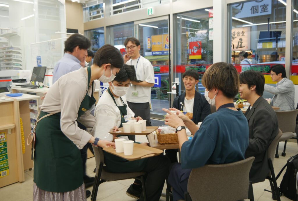 スギ薬局のスタッフもサポートに回り、帝京平成⼤学とスギ薬局の『健康茶房』がスタートした。